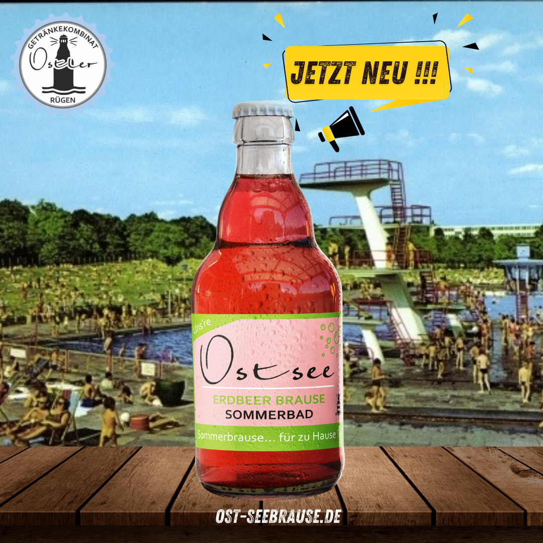 Uns’re Brause, hergestellt nach alter Rezeptur in einem ehemaligen VolksEigenem Betrieb, schmeckt OHNE KONSERVIERUNGSSTOFFE prickelnd nach BADESPASS + feinster Ware aus dem Osten und FRISCHEN WALDERDBEEREN.
