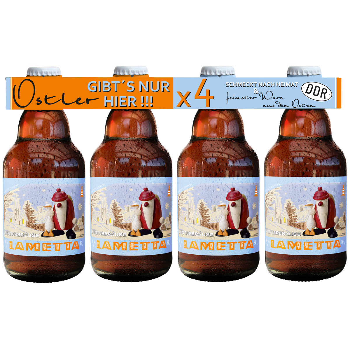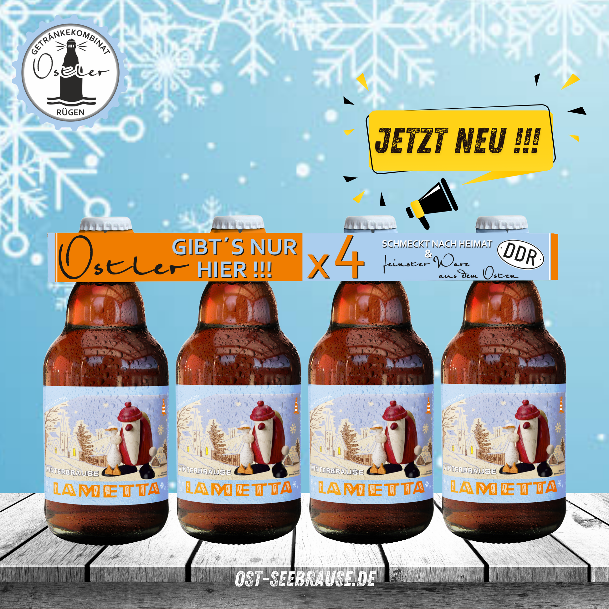 Uns’re Winterbrause, hergestellt nach alter Rezeptur in einem ehemaligen VolksEigenem Betrieb, schmeckt OHNE KONSERVIERUNGSSTOFFE prickelnd nach Winterspass + feinster Ware aus dem Osten und viel LAMETTA.